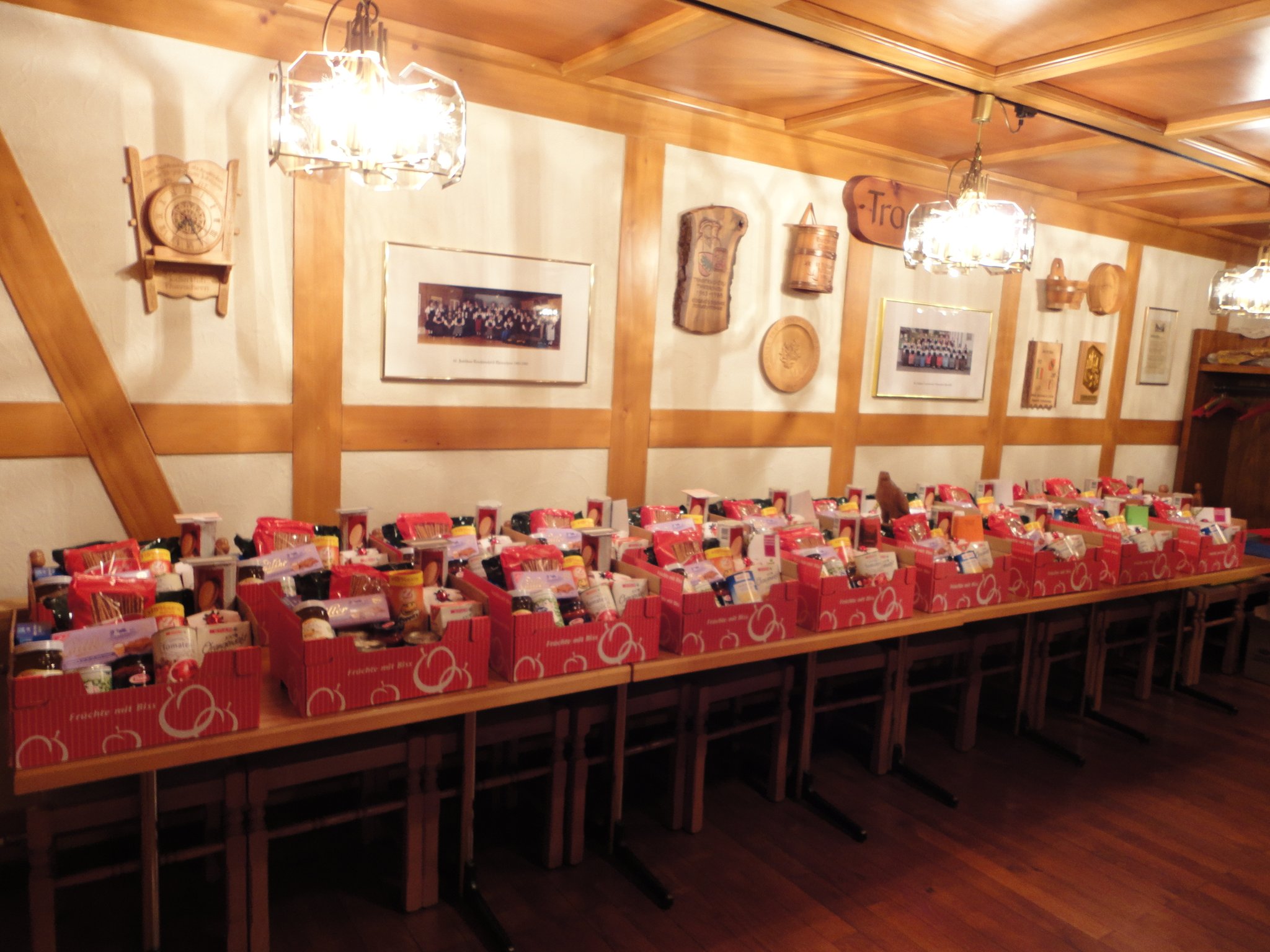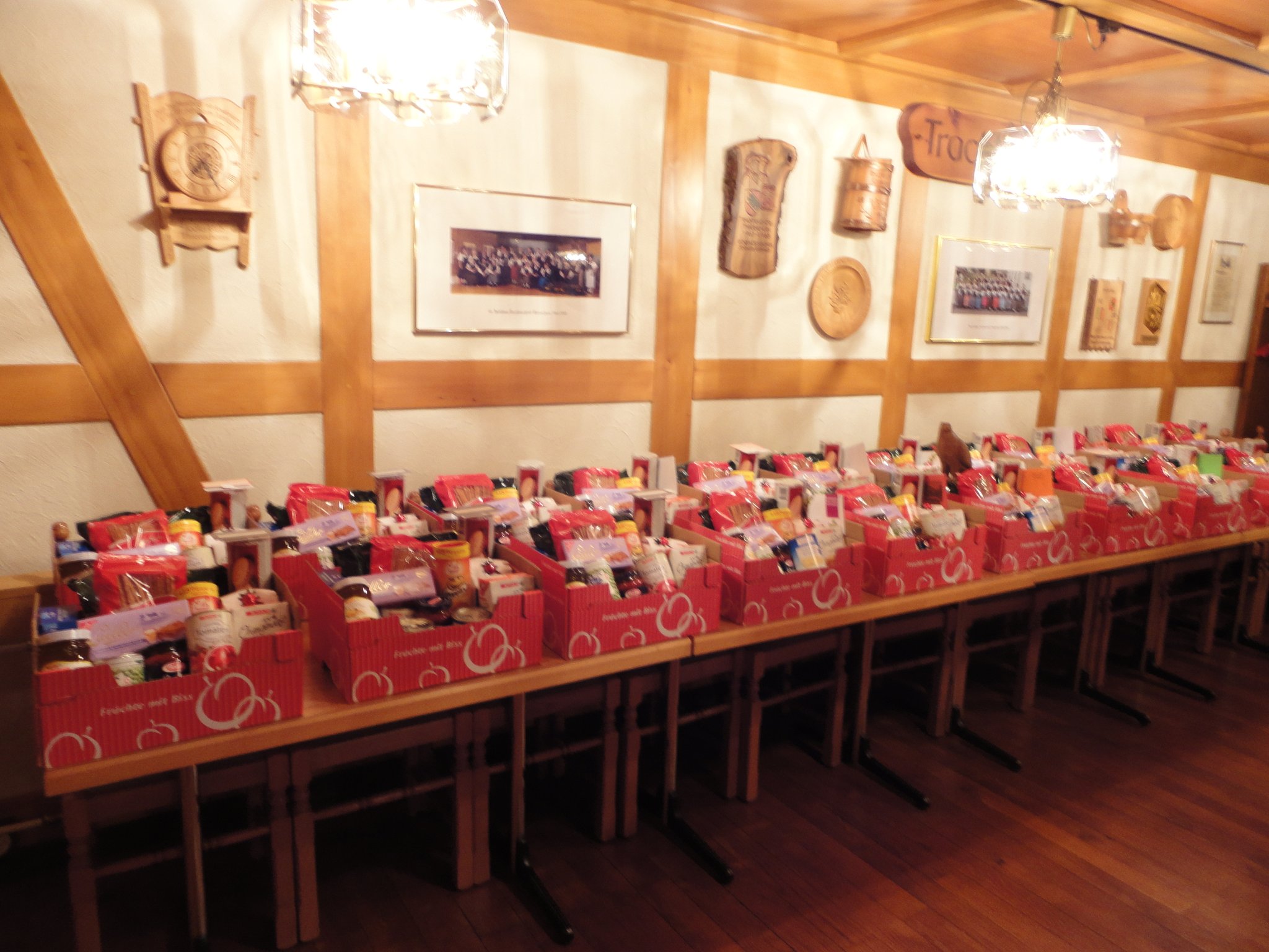 Gab es dort doch wieder einen schönen und umfangreicher Gabentisch zu bestaunen und zum auswählen der schönen und wertvollen Preise. Alle erhielten wiederum eine grosse Kartonkiste, gefüllt mit leckeren Lebensmittel. Zusätzlich noch eine weitere Gabe. Siehe Fotos im Anhang.